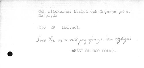 //// • ¦ r.: r*... ¦ :.. //// Och flickornas kärlek och ängarna grön, De pryda //// N:o 29 Mel*not* //// i //// Siw nft ryjwcy //// _ ÄHLST1DM 300 FOLKV. ////