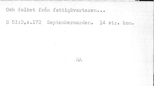 //// Och folket från fattigkvarteren... B 51:2,s.172 Septembermorden. 14 str. kom. //// t //// y\ t. //// RÅ ////