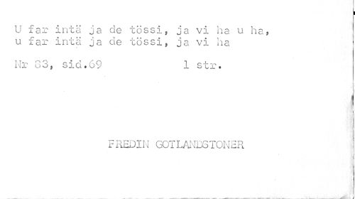 //// I //// U far inta ja de tössi, ja vi ha u ha, u far inta ja de tössi, ja vi ha //// TvT-i- ° Q c i A A O 1 o---v //// In JL uOj bIG»UV i Su. //// i //// i //// FREDIN GOT LANDSTONER ////