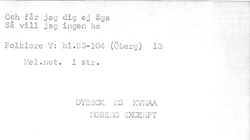 //// Och får jag dig ej äga Så vill jag ingen ha //// Folklore V: bl.83-104 (Öberg) 13 | //// * //// Mel.not. 1 str. //// ¦ //// DYBECK L'£ KVIIAA I.DBSRG EXCERPT ////