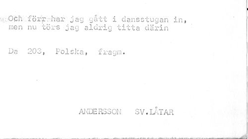 //// ! //// ffcöfeh föfrrhar jag gått i dansstugan in, men nu törs jag aldrig titta därin //// Da 203, Polska, fragm. //// v //// ANDE RSSON SV. ii.T AR //// _ . . . ^ % t . * . ___-___ . — -• . •' i ////