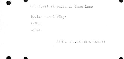//// Och först så prisa de Inga Lena Spelmannen i Vänga //// * W* //// O 1 Q o • J.u o //// Märke //// t //// STRÖM SV.VISOR o.RAMSOR ////