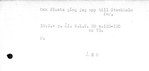 //// o //// Och första gang jag upp till Stockholm //// for, //// m //// 10:3.+ r. Ål. S.L.S. 29 s.133-135 //// nr 73. //// M i ¦:¦ * ////