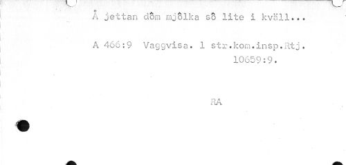 //// % //// A jettan dom mjölka so lite i kväll.•• //// A 466:9 Vaggvisa. 1 str.kom.insp.Rtj. //// 10659:9. //// \ //// (Vi ////