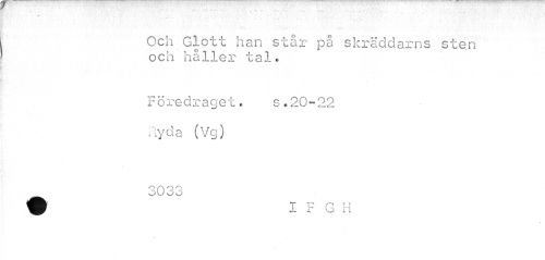//// f — •• — v . , - -> //// Och Glott han står på skräddarns sten och håller tal. //// Föredraget. s.20-22 /Lyda (Vg) //// OOQO ////