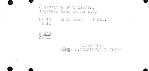 //// A gossarna gå i ringen',1 spatsera sina jämna steg //// Nr 10 £nd. text 1 str. s.ll //// D 240 iTomm. //// O.CAPPELIN SaH§- o . DANS LEKAR I KIVIK //// c; ////