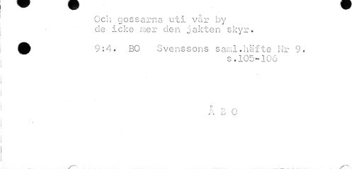 //// Och gossarna uti vår by de icke mer den jakten skyr. //// 9:4. BO Svenssons saml.häfte Nr 9. //// s.105-106 //// o //// a n n //// u \J ////