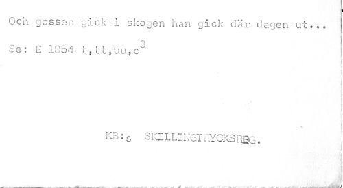 //// I //// Och gossen gick i skogen han gick där dagen ut... Se: E 1854 t,tt,uu,c3 //// KB: s S Kl LLINGT uYCKS Em. //// ___ ___ - ___ . w. tf .?.: M C . >t$ . ,-k ti - A , 7, .. «L ft . Mteff. <V'\.J ////
