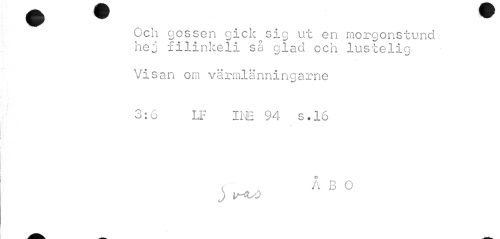 //// Och gossen gick sig ut en morgonstund hej filinkeli så glad och lustelig //// Visan om värmlänningarne 3:6 LF INE 94 s.16 //// , ÅBO //// ) l^UJ ////
