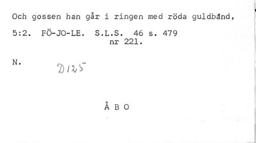 //// Och gossen han går i ringen med röda guldbånd, //// 5:2. FÖ-JO-LE. S.L.S. 46 s. 479 //// nr 221. //// N. //// DM //// i //// ÅBO ////