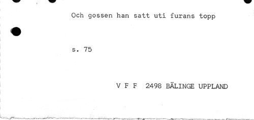 //// Och gossen han satt uti furans topp s. 75 //// V F F 2498 BÄLINGE UPPLAND ////