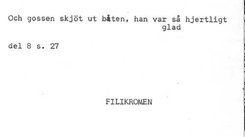 //// - //// Och gossen skjöt ut båten, han var så hjertligt //// glad //// del 8 s• 27 //// • • //// - //// 'i //// » . A //// jf 1 //// FILIKROMEN //// I ////