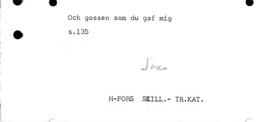 //// Och gossen som du gaf mig //// •s.135 //// v 1 //// J t^Lo //// H-FORS SKILL.- TR.KAT. ////