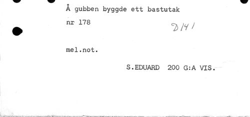 //// A gubben byggde ett bastutak nr 178 ^ JV / //// mel.not. //// S.EDUARD 200 G:A VIS. //// i ////