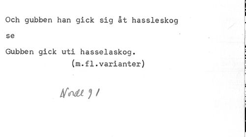 //// Och gubben han gick sig åt hassleskog se //// j //// Gubben gick uti hasselaskog. ; //// i //// (m.f1.varianter) //// 4 foéU J / //// ¦ ////