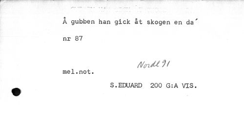 //// " ---* - T r A — r r- v. . - . //// Å gubben han gick åt skogen en da' nr 87 //// ttaiM K //// mel.not. //// S.EDUARD 200 G:A VIS. //// fl ¦ //// v b' ////