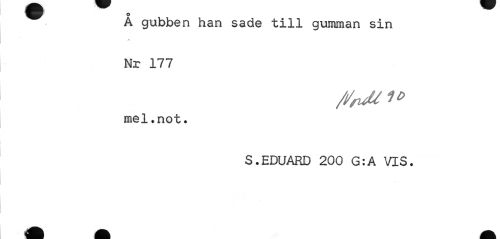 //// Å gubben han sade till gumman sin //// .¦»i //// Nr 177 mel.not. //// S.EDUARD 200 G:A VIS. ////