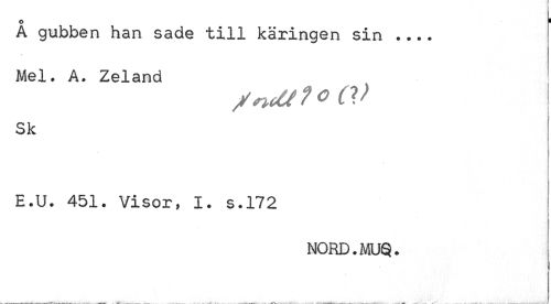 //// o //// A gubben han sade till käringen sin ... Mel. A. Zeland //// /nMfoCV //// Sk //// : //// E.U. 451. Visor, I. s.172 //// NORD.MUQ. ////