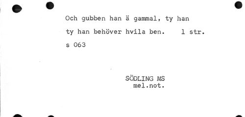 //// Och gubben han ä gammal, ty han ty han behöver hvila ben. 1 str. s 063 //// SODLING MS mel.not. ////