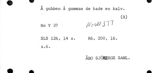 //// Å gubben å gumman de hade en kalv. //// (R) //// No Y 37 //// SLS 126, 14 a. R6, 200, 16. s.6. //// ÅBO SJÖBJERGS SAML. ////