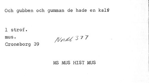 //// Och gubben och gumman de hade en kalf //// i //// 1 strof. mus- 7 //// Croneborg 39 //// MS MUS HlST MUS //// J ////
