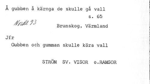 //// Å gubben å kärnga de skulle gå vall //// s. 65 //// Afa&y*' Brunskog, Värmland , //// Jfr //// Gubben och gumman skulle köra vall //// STRÖM SV. VISOR o.RAMSOR ////