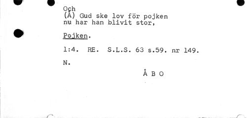 //// ogh //// (A) Gud ske lov för pojken nu har han blivit stor, //// W Pojken. //// 1:4. RE. S.L.S. 63 s.59. nr 149. N. //// ÅBO //// ?"V ~ \ ////