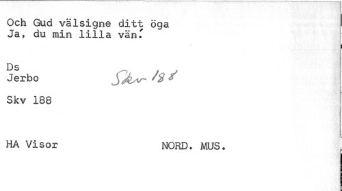 //// Och Gud välsigne ditt öga Ja, du min lilla vänT //// ' ¦ 5 j //// D s //// Jerbo ^ //// Skv 188 //// HA Visor NORD. MUS. i ////