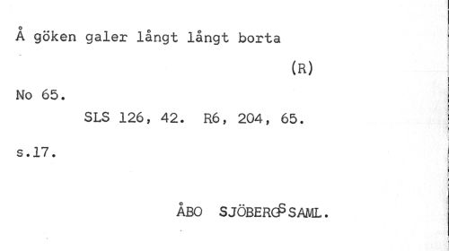 //// Å göken galer långt långt borta //// (R) //// No 65. //// SLS 126, 42. R6, 204, 65. //// j //// \ //// i //// s.17 • //// t //// M //// ? //// i //// t f ////