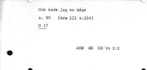 //// Och hade jag en båge s. 90 (Arw III s.214) //// t ,' //// D 17 //// ARW MS KB Vs 2:2 ////