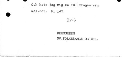 //// Och hade jag mig en fulltrogen vän Mel.not. Nr 143 //// 2//Z //// BERGGREEN //// SV.FOLKESANGE OG MEL. ////
