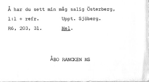 //// Å har du sett min måg salig Österberg, 1:1 + refr. Uppt. Sjöberg. //// R6, 203, 31. Mel. //// ÅBO RANCKEN MS ////