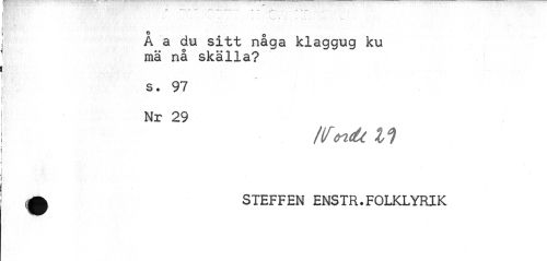 //// f t //// o 0 //// A a du sitt naga klaggug ku mä nå skälla? //// s. 97 //// Nr 29 //// tifrKtil1) //// STEFFEN ENSTR. FOLKLYRIK ////
