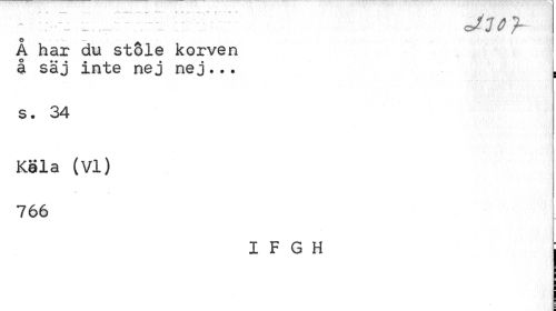 //// ...<JWh //// A har du stole korven å säj inte nej nej... //// s. 34 //// Käla (VI) 766 //// I F G H ////