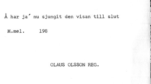 //// I //// Å kar ja' nu sjungit den visan till slut //// ! //// M.mel. 198 //// j //// = //// s //// i //// i i //// l //// k //// OLAUS OLSSON REG. ////
