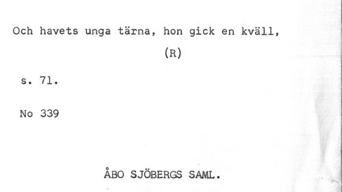 //// Och havets unga tärna, hon gick en kväll, //// (R) //// s. 71. No 339 //// v //// ÅBO SJÖBERGS SAML. //// rsS i ////