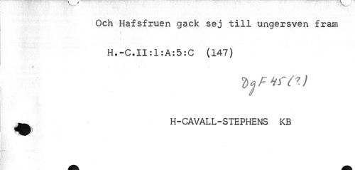 //// Och Hafsfruen gäck sej till ungersven fram //// i //// H.-C.II:1:A:5:C (147) //// / - //// 2UF*if(*) //// ^ H-CAVALL-STEPHENS KB ////