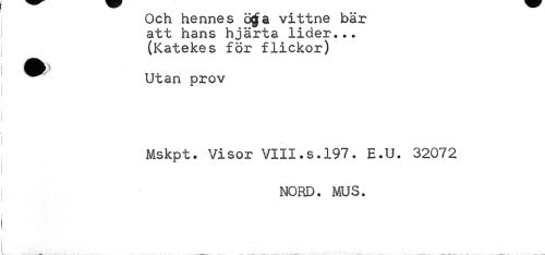 //// Och hennes ö£a vittne bär att hans hjärta lider*.. (Katekes för flickor) //// ^^ Utan prov //// Mskpt. Visor VIII.s.197. E.U. 32072 //// NORD. MUS. ////
