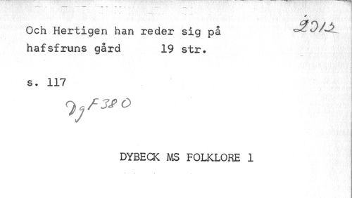 //// Och Hertigen han reder sig på <=20/Jl //// hafsfruns gård 19 str. //// s. 117 //// 9jfiw //// DYBECK MS FOLKLORE 1 ////