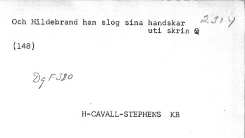 //// ... ... . ... - ] //// - - ... //// Och Hildebrand han slog sina handskar ^ ^¦ Y //// uti skrin //// (148) //// I //// fy FJSo //// ¦ //// H-CAVALL-STEPHENS KB //// 4 ////