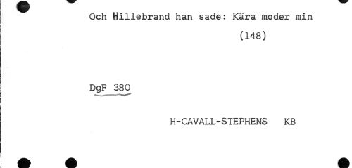 //// Och Hillebrand han sade: Kära moder min //// (148) //// DgF 380 //// H-CAVALL-STEPHENS KB ////