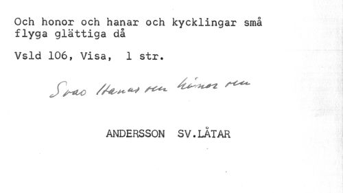 //// Och honor och hanar och kycklingar små flyga glättiga då //// Vsld 106, Visa, 1 str. //// ANDERSSON SV.LÅTAR ////