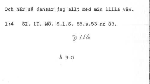 //// Och här så dansar jag allt med min lilla vän. j' 1:4 SI, LT, MÖ. S.L.S. 55.S.53 nr 83. //// D//£> //// i //// ÅBO //// ... //// * //// t ////