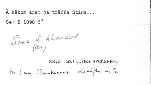 //// i //// A härom året ja träffa Stina... Se: E 1898 f3 //// (QO-j //// KB:s SKILLINGTRYCKSREG. ////