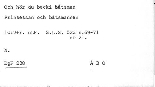 //// Och hör du becki båtsman Prinsessan och båtsmannen //// 10:2+r. nLF. S.L.S. 523 s.69-71 //// nr 21. //// N. //// DgF 238 ÅBO ////
