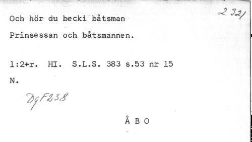 //// Och hör du becki batsman ' //// * //// Prinsessan och båtsmannen. ¦ //// 1:2+r. Hl. S.L.S. 383 s.53 nr 15 N. //// ÅBO //// *** 'i ////