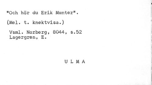 //// i //// i //// "Och hör du Erik Munter". //// i ( //// j //// i //// i //// (Mel. t. knektvisa.) //// i //// Vsml. Horberg, 8044, s.52 //// Lagergren, E. i //// i //// i //// ¦ il i //// fl I //// U L M A ; //// j ////
