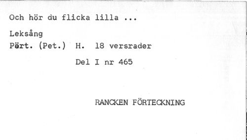 //// Och hör du flicka lilla ... Leksång //// Part. (Pet.) H. 18 versrader //// Del X nr 465 //// RANCKEN FÖRTECKNING ////