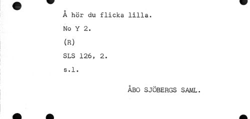 //// Å hör du flicka lilla. No Y 2. //// (R) //// SLS 126, 2. 8.1. //// ÅBO SJÖBERGS SAML. ////