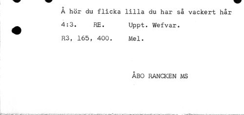 //// Å hör du flicka lilla du har så vackert hår ^ 4:3. RE. Uppt. Wefvar. //// R3, 165, 400. Mel. //// ÅBO RANCKEN MS //// ---o^r-N^vr^T ---w*» -i» —.. _ r^ --V--^. --• « —r ___k. , . ¦___ .. -v... ////